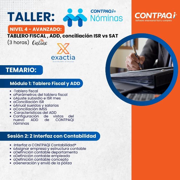 Taller CONTPAQi tablero fiscal , ADD, conciliación ISR vs SAT.