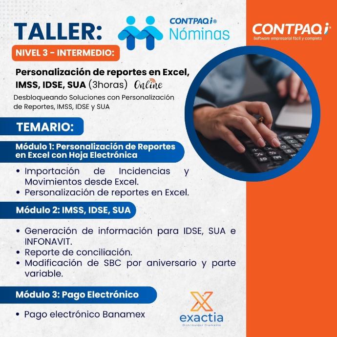 Taller CONTPAQi Nóminas reportes en Excel, IMSS, IDSE, SUA y pagos eléctronicos