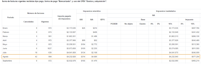 Visor del SAT de CFDIs de pagos recibidos con forma de pago “bancarizado” y uso del CFDI “Gastos y adquisiciones”: