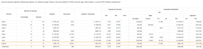 Visor de facturas recibidas con método de pago “pago en una sola exhibición” (PUE), forma de pago “Bancarizado”, y uso del CFDI “Gastos y adquisiciones”: