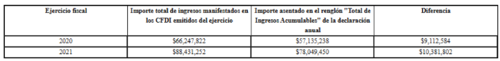 C. El presente escrito tiene como finalidad aclarar las supuestas diferencias con base en la siguiente explicación: Estas diferencias se ven reflejadas en los ejercicios 2020 y 2021, y corresponden a descuentos sobre ventas que se manifestaron en los CFDI de tipo ingreso emitidos a los clientes.