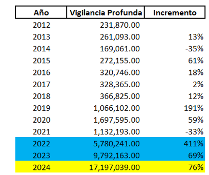 Durante el ejercicio 2024, el SAT envió un poco más de 17,000,000 de requerimientos por el programa de vigilancia profunda, considerando que en México hay alrededor de 5 millones de empresas entre personas físicas y morales, los contribuyentes recibieron en promedio, alrededor de 4 requerimientos y se espera que durante el ejercicio 2025 los requerimientos por vigilancia profunda que envíe el SAT supere los 25 millones.