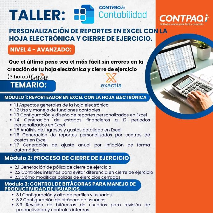 Taller CONTPAQi Contabilidad Personalización de reportes en Excel con la Hoja Electrónica y cierre de ejercicio.